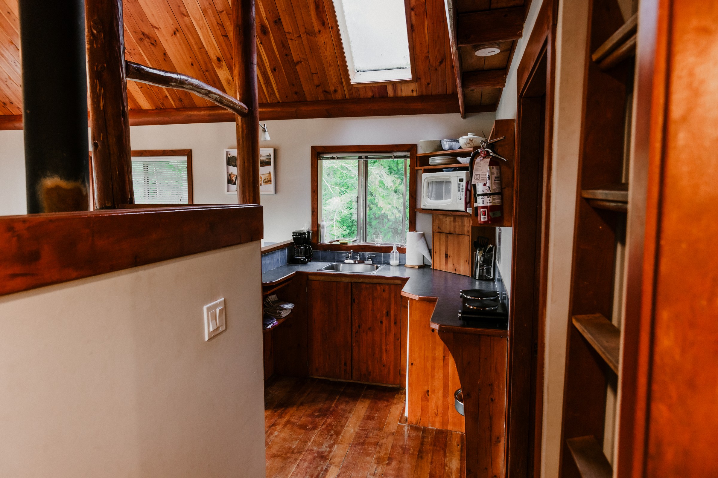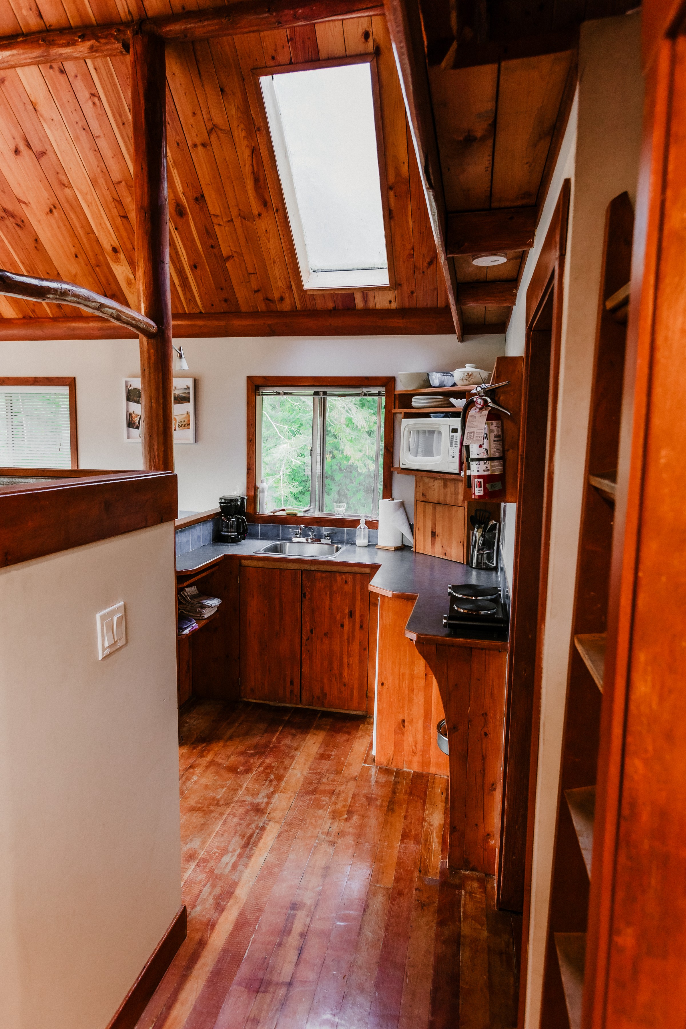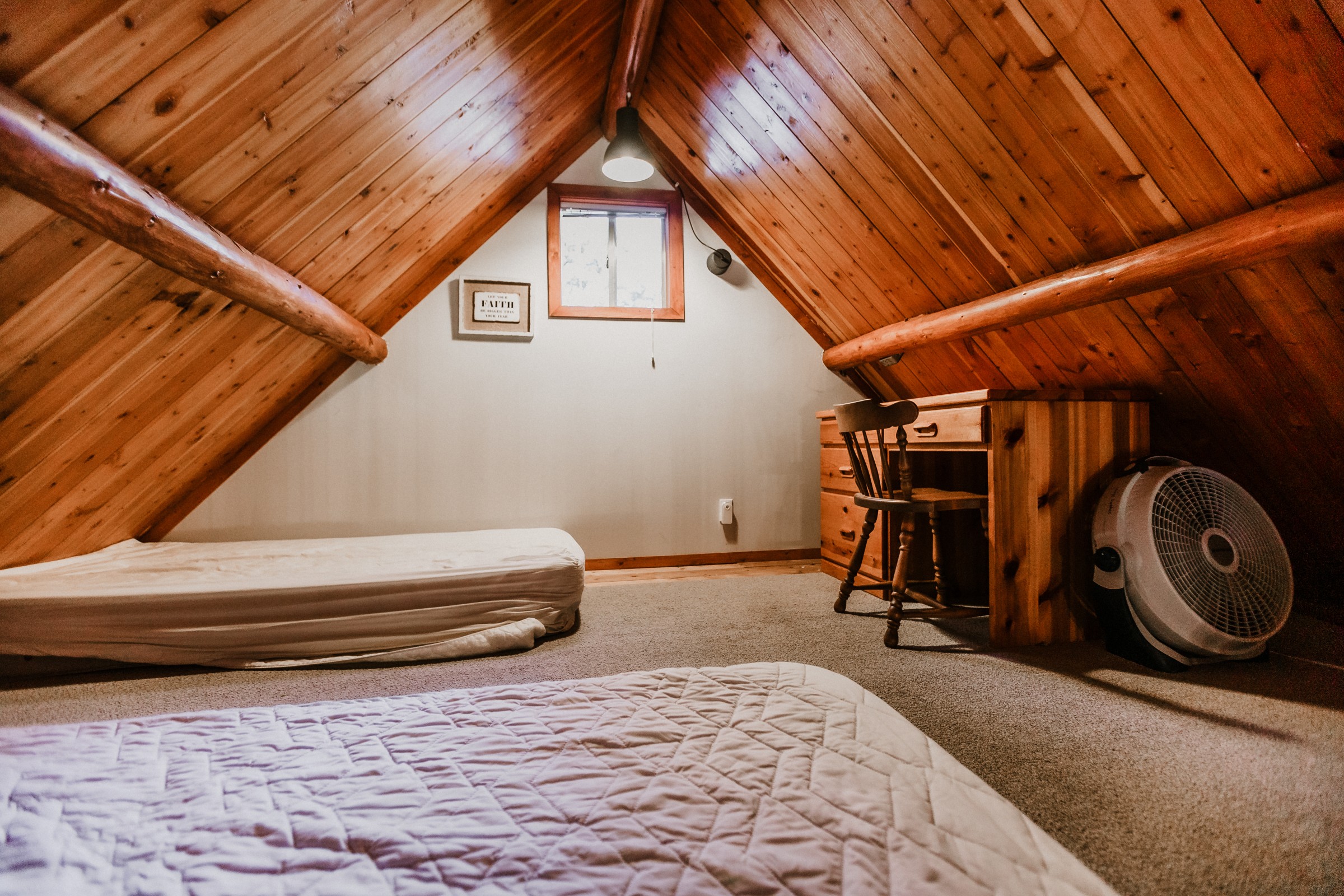 Includes: Queen bed downstairs, 4 single mattresses up in the loft, one bathroom and a kitchenette.